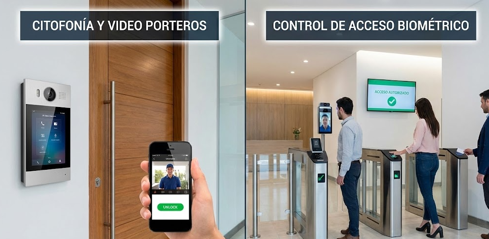 Citofonía y Video Porteros: Instalación de video porteros IP para casas y sistemas multi-departamento. Apertura remota de chapas eléctricas desde el celular. Control de Acceso Biométrico: Sistemas de ingreso por huella, reconocimiento facial o tarjeta RFID para control de asistencia de personal o acceso a áreas restringidas.